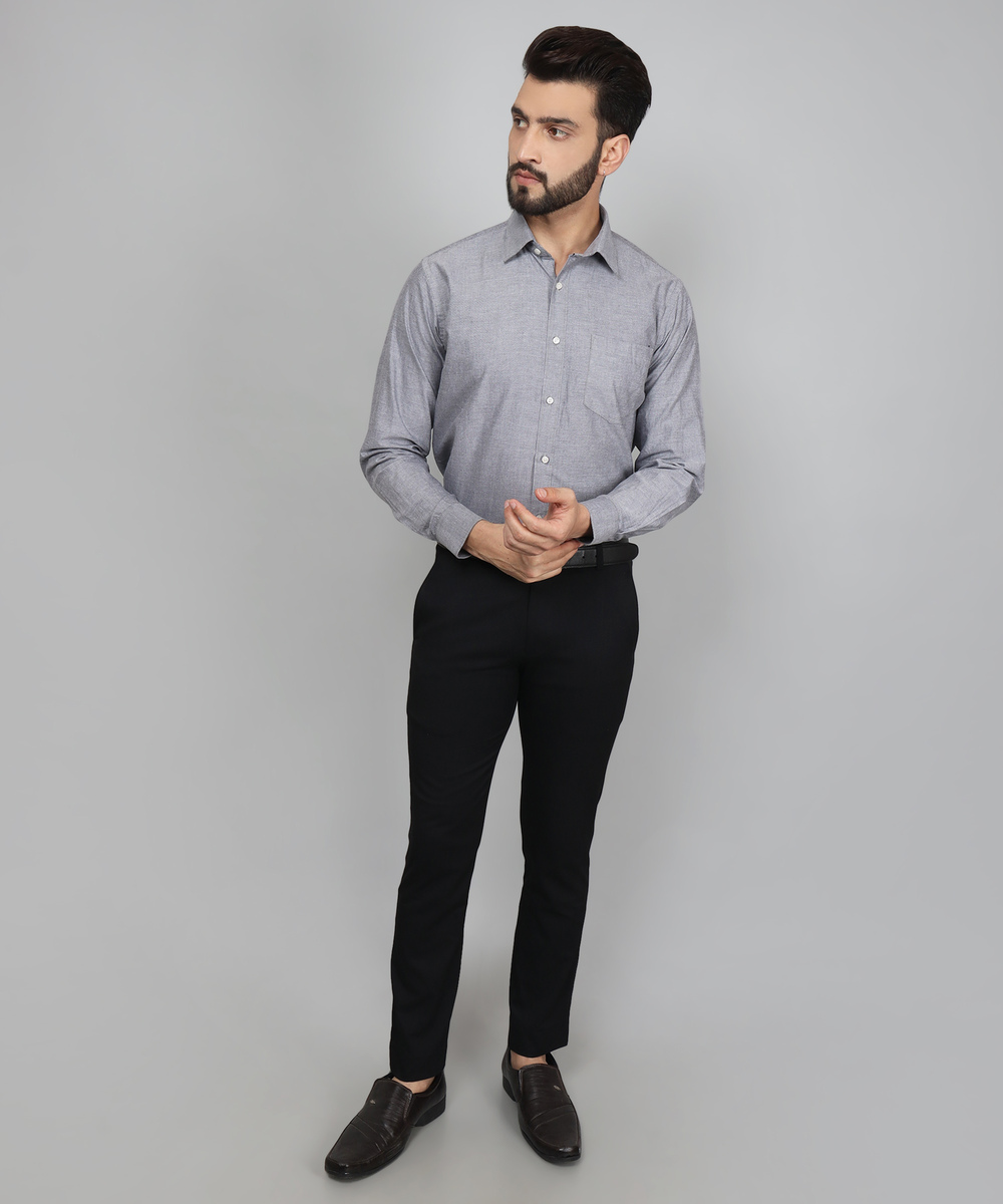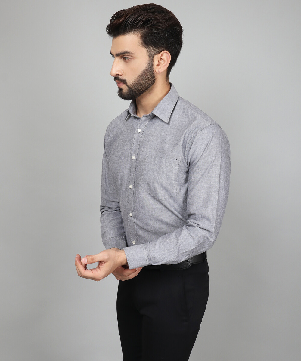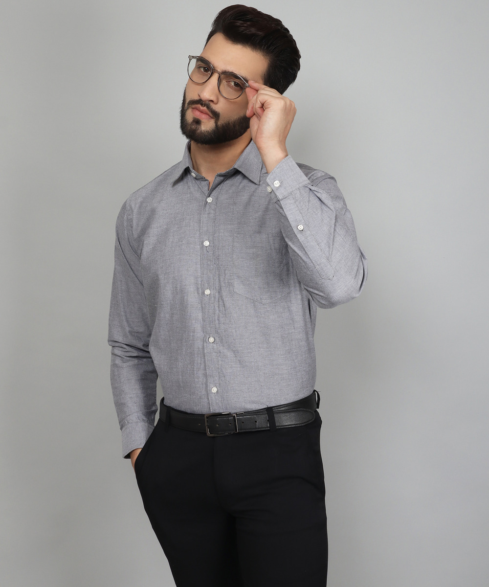 French Grey Solid Shirts For Men